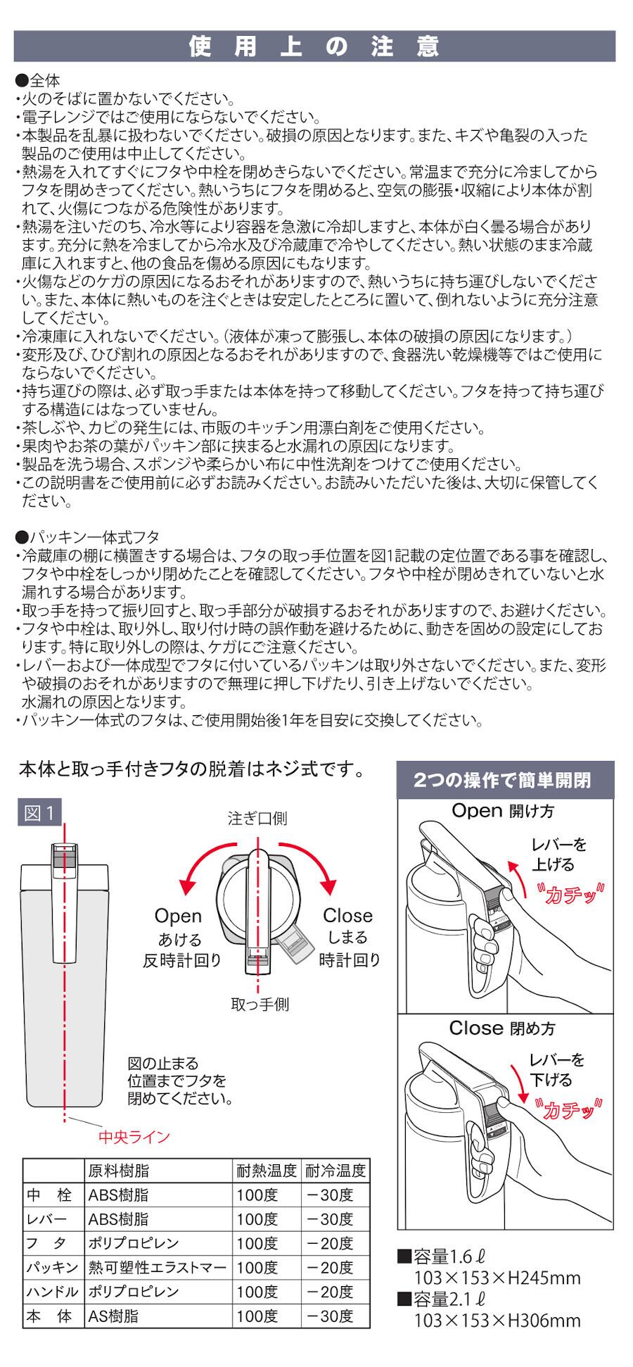 フタが 1.6Lと2.1Lで同じ大きさの為、共用可能です。
